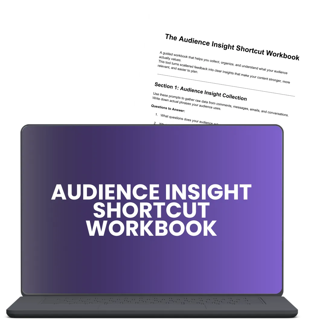 - A simple workbook that helps you collect and organize audience insights so you always know what topics will resonate and why.